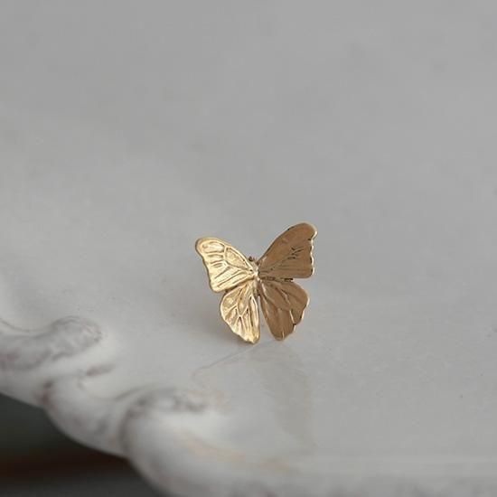 ワンポイントのアクセントとしてはもちろん、両耳にペアで着けたり、デザイン違いのチョウピアスと合わせたり、自在な組合せで耳元に蝶が集まっているような艶やかなコーディネートをお楽しみいただけます。