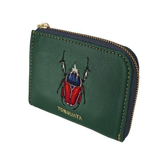 ジュエリーブランドTORQUATA(トルクアータ)人気の革小物シリーズ、昆虫刺繍付き牛革コンパクトL字財布。