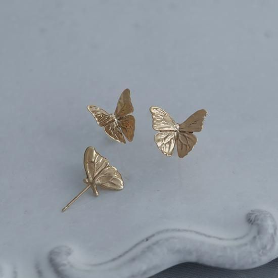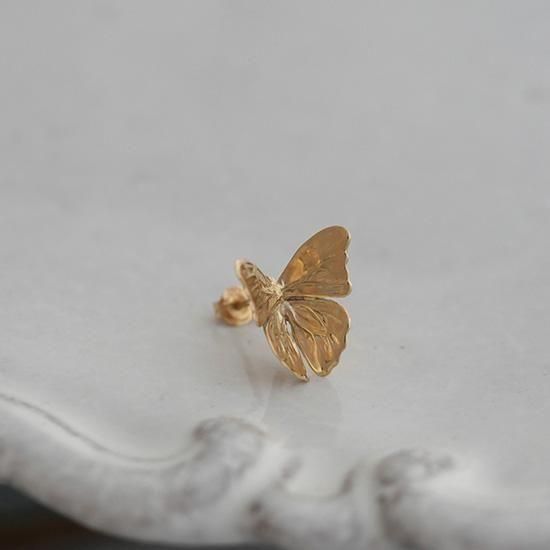 TORQUATA(トルクアータ)の人気シリーズ、蝶モチーフのK10ピアス。羽を閉じかけたモルフォ蝶の美しいシルエットを繊細に表現した女性らしいデザイン。